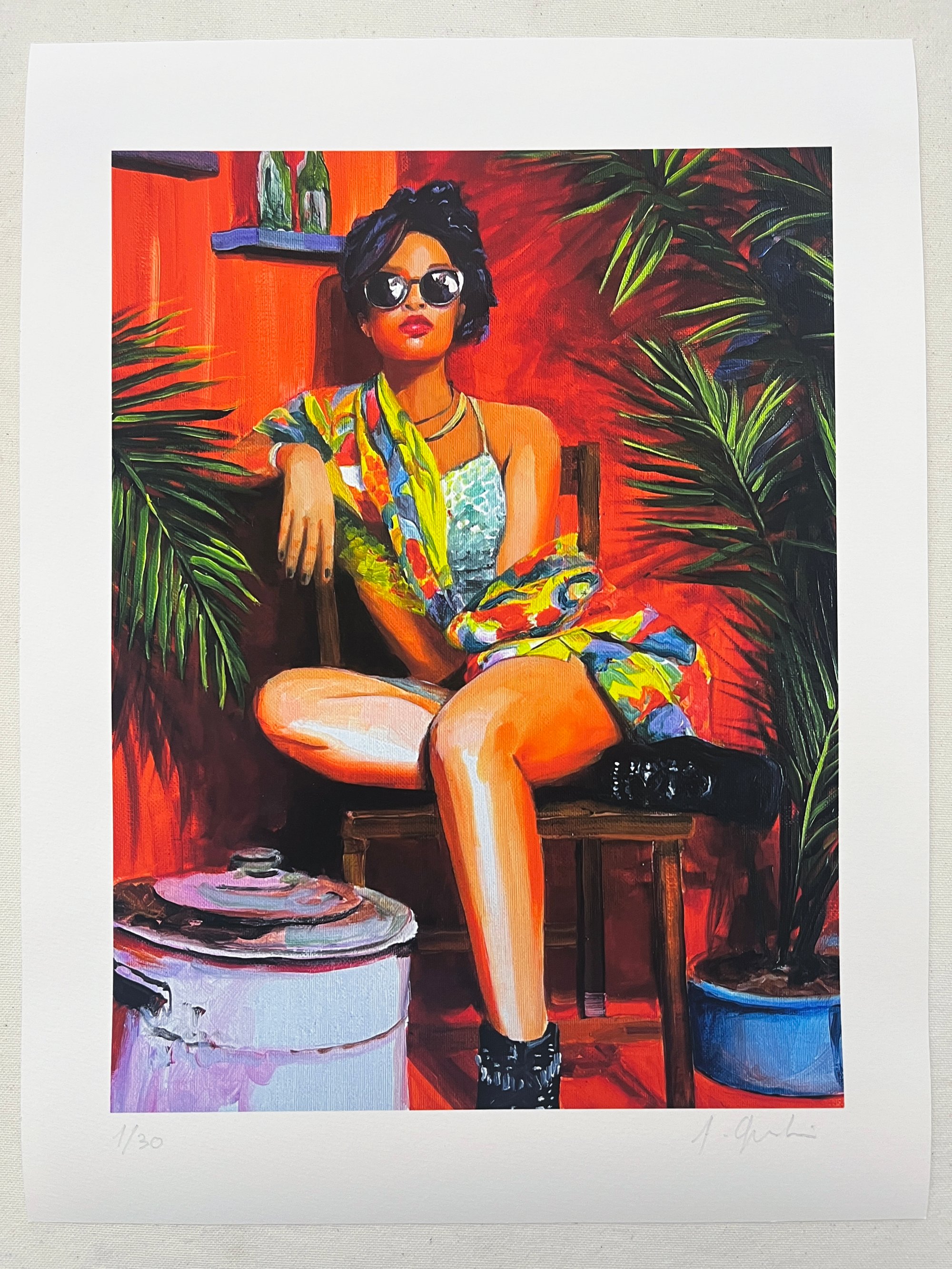 Impression à encre pigmentaire de haute qualité sur papier Hahnemühle Sugar Cane 290gr/m², composé à 70% de fibres de canne à sucre. Tirage réalisé à partir d'une oeuvre originale à l'huile.